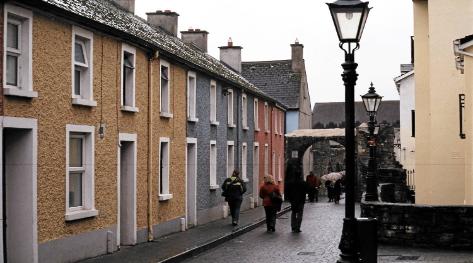 Irish towns are chock full of pedestrian areas where the narrow alleys are closed to vehicular traffic and are lined with
